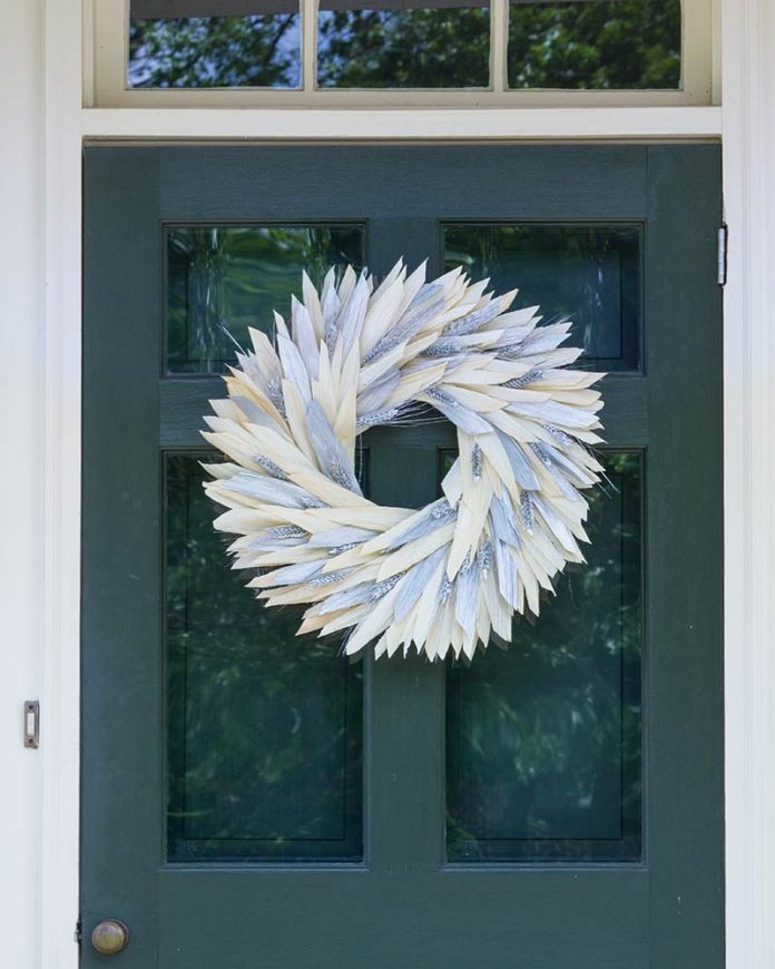 Silver corn-husk wreath from Garnett Hill, garnethill.com or 800-870-3513.
