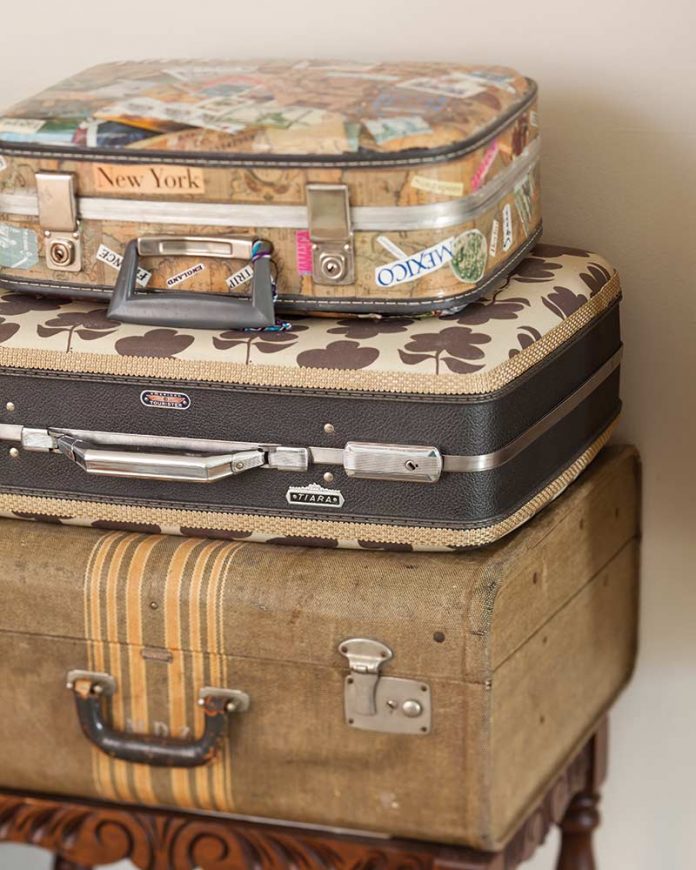 Put those vintage pieces to good use! Stacked high to create a charming display, these antique suitcases also offer extra storage.