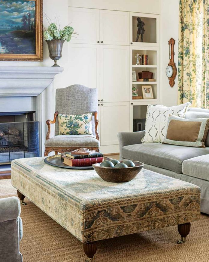 Found a piece you love but have no use for? Don’t be afraid to reinvent it, like the Oriental rug that was used to upholster this ottoman.