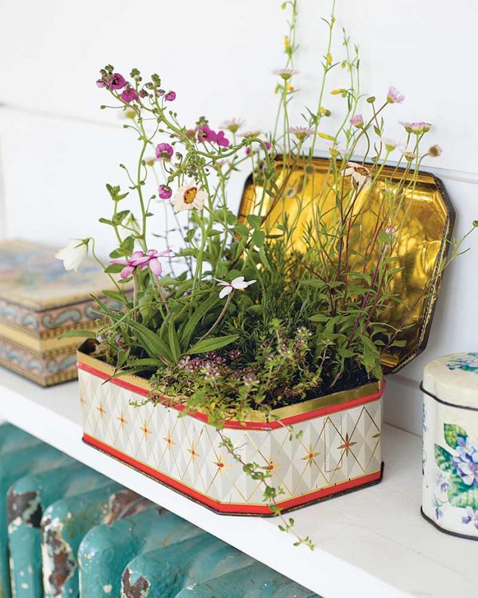 Those vintage tins are good for more than holding spare change and loose buttons—give them new life (literally) by using them as planters.