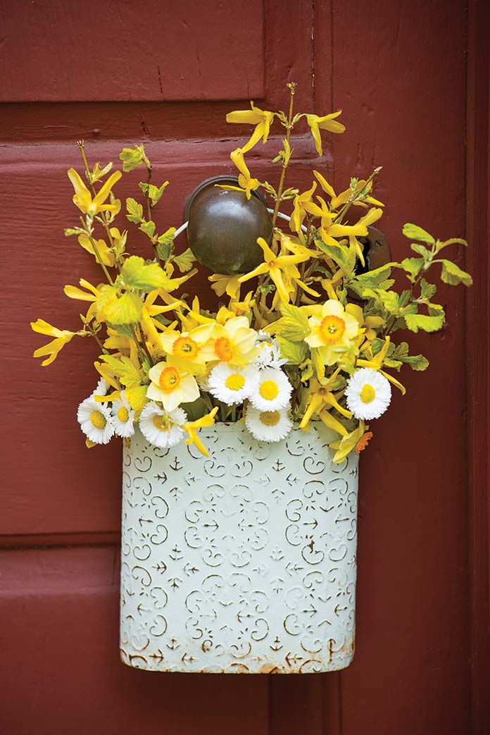 All is revealed when you turn back to the door. A beguiling little basket is dangling, jam-packed with seasonal gladness. It isn’t grand or carefully designed. It doesn’t look like anyone’s version of florist’s perfection. Instead, it’s overflowing with a sunny homage to hope. Hastily tied to the knocker with ribbons—maybe slightly disheveled in the delivery process—your newfound basket of blossoms is the epitome of spring.