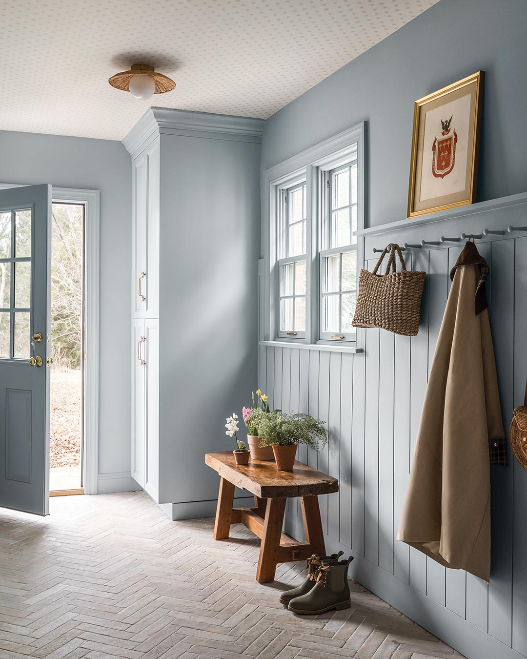 To complement the refreshed kitchen, Samantha also added a new mudroom, a hardworking yet charming area that stores belongings while offering a seamless transition into the home’s main living areas.
