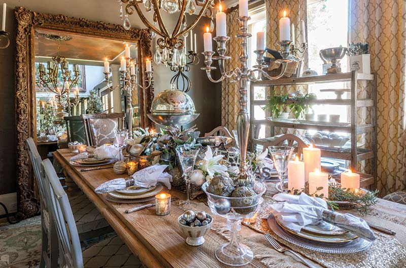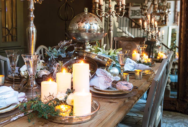 December is a time for holiday entertaining. During Christmas and New Year’s, parties and dinners seem to multiply. For a beautiful holiday tablescape, bring out the old and the new. Gather candlesticks of various sizes and metals, both glass and porcelain plates, and add a dash of greenery and candlelight for a little holiday magic.