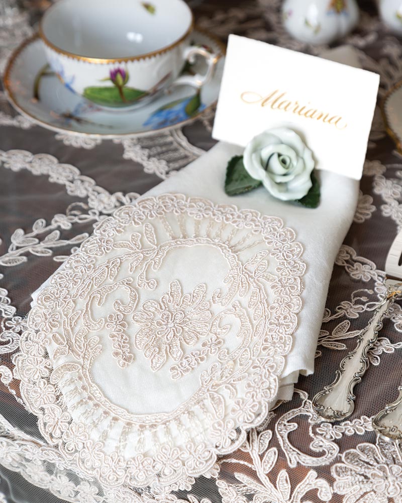 Through the years, Lois has noticed a special affinity in the South for her work. “Southern families treasure and appreciate the formality of antique linens and pass this down to each generation,” she says. “Many of my customers are younger Southern ladies who have been taught the tradition of using these treasures and continue to add to their collections. Southern brides love using antique tablecloths at their weddings and give antique hankies to their moms, grandmas, and bridesmaids as favors.”