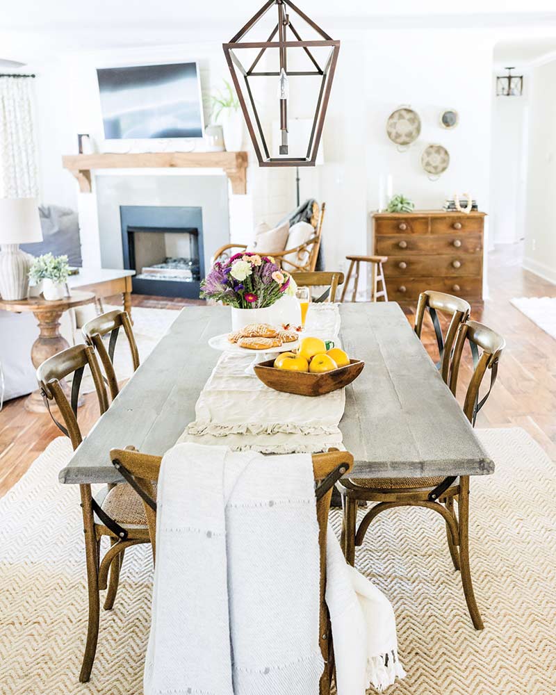 With so much wood in the form of flooring, end tables, dressers, and more, it would have been easy for the house to be too rustic, like Bobbi and Dan feared. To combat this, Lauren chose a light-colored wood that blends in with the white walls more than it stands out. “Once I picked a wood tone, I just carried that throughout the house,” she says. “I stayed away from dark stains and kept things natural and light, and that helped the space stay bright and airy.”