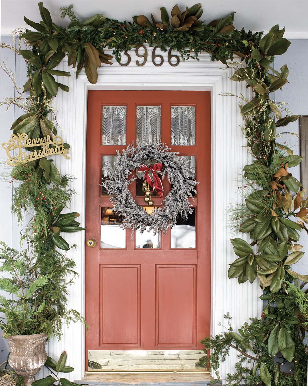 Decking your doors—and windows and lampposts—with glorious holiday finery sends a distinctively personal greeting to all who pass by. Embellish basic wreaths and garlands with materials that reflect your own sense of style.