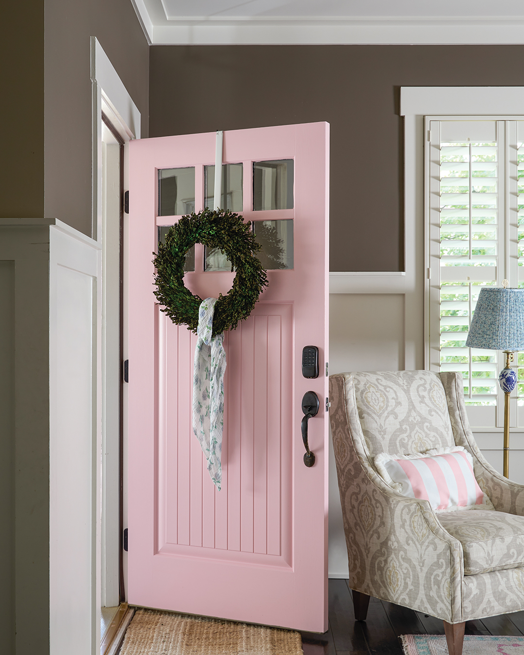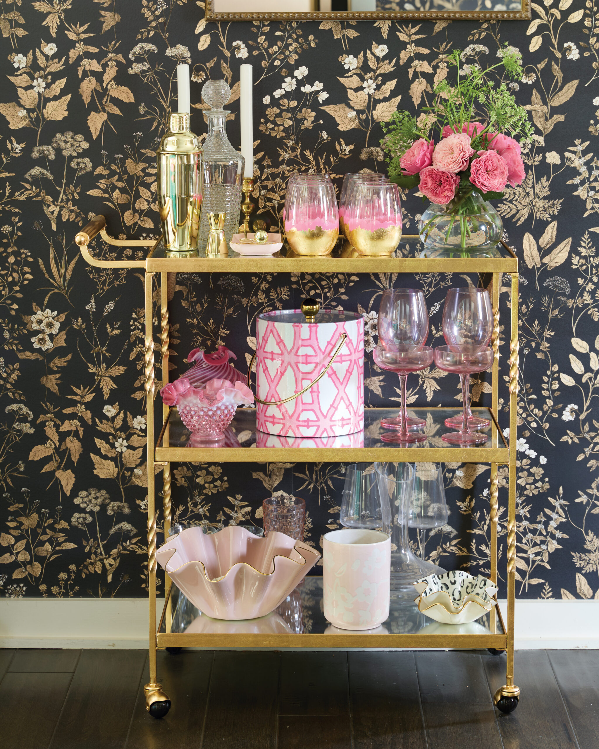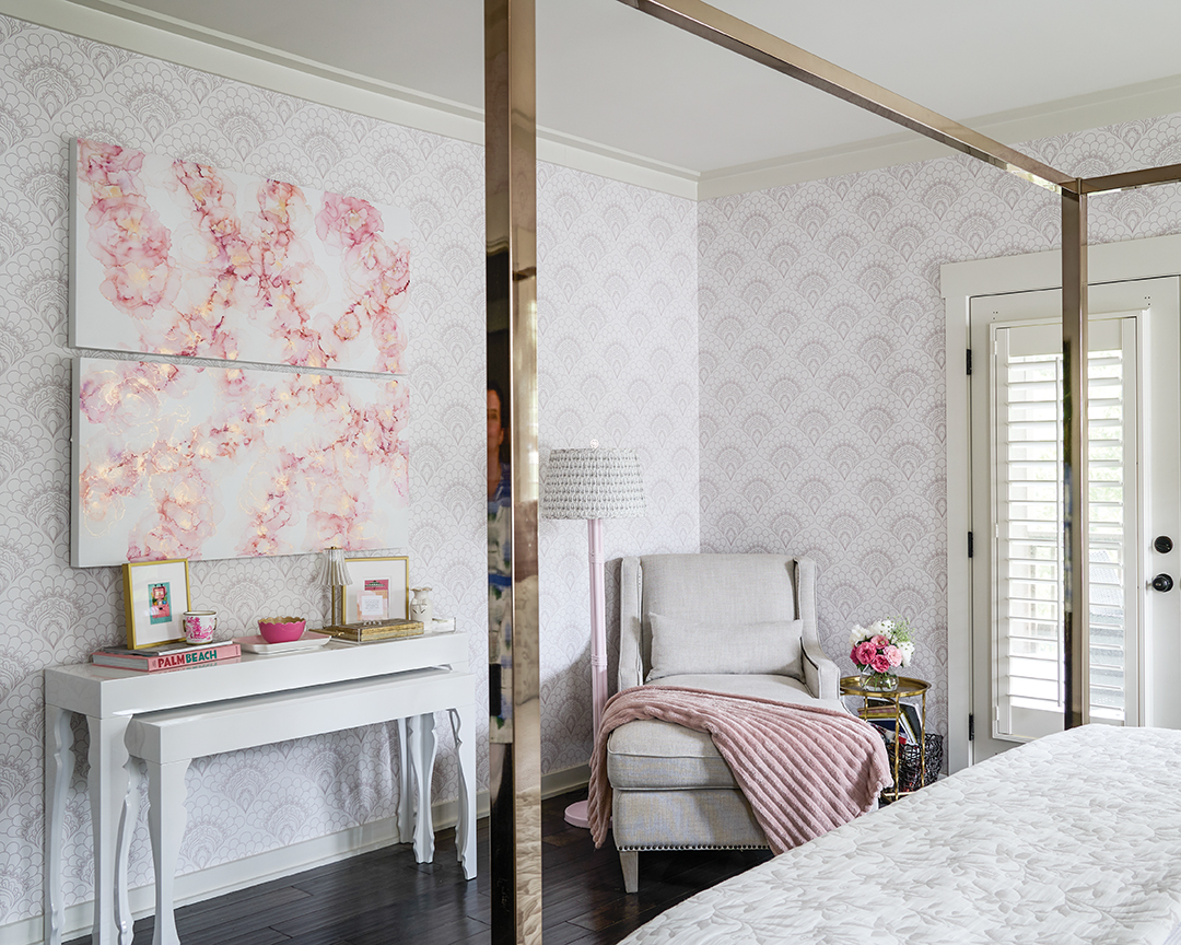 Alieta and her husband, Logan, built this Craftsman-style home in Hoover, Alabama, ten years ago. “I love change, so we’ve probably touched every room since then,” she says. A vacation in Palm Beach influenced many of her design choices in the home. Dashes of kelly green, fuchsia, and cobalt infuse the abode with striking color, while gold accents, natural wood tones, and a neutral shade of peppercorn gray keep it feeling casual.