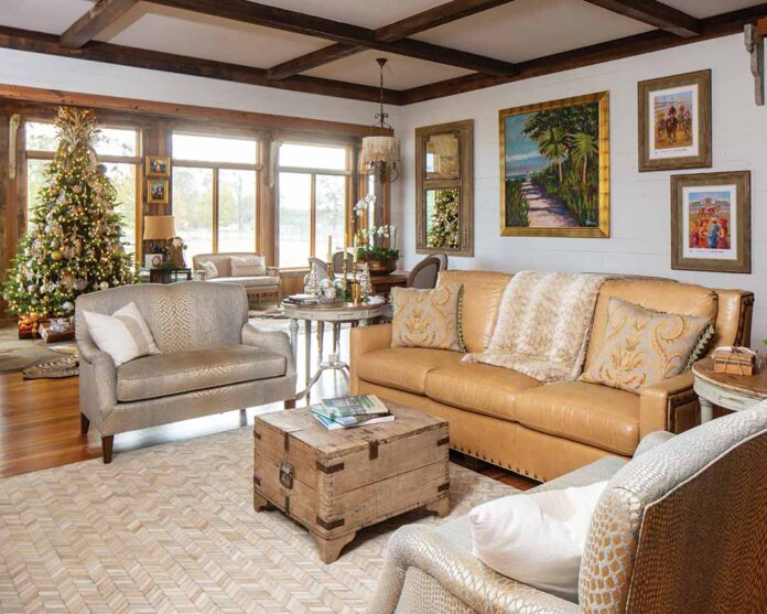 Traditional touches strike a balance with this Southern abode’s subtle modern influence for a cottage teeming with sophisticated and comforting Christmas style.