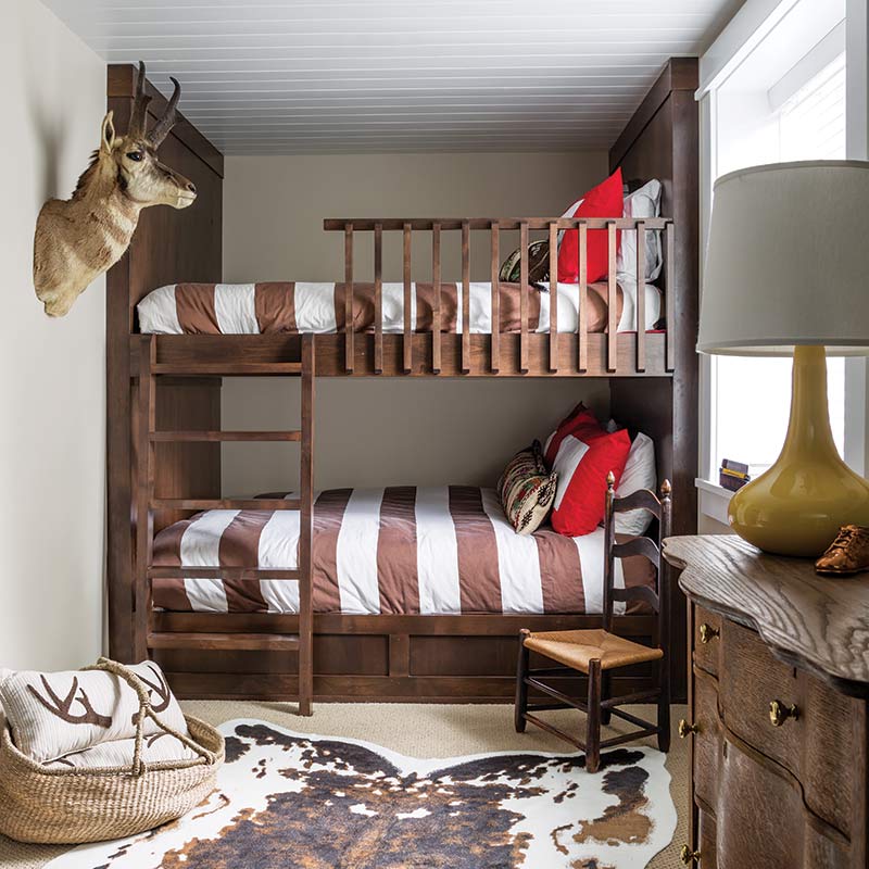 As an interior designer, Katie Payne Confer of That Girl Katie Design Studio knows how to tackle a challenging project. But when she and her husband moved from San Francisco, California, to a mountain home in Jackson, Wyoming, they were faced with the challenge of turning the space into the perfect home for their family. “There were just weird angles and . . . some odd things that didn’t make sense,” Katie says, noting that the basement was in particularly bad shape.
