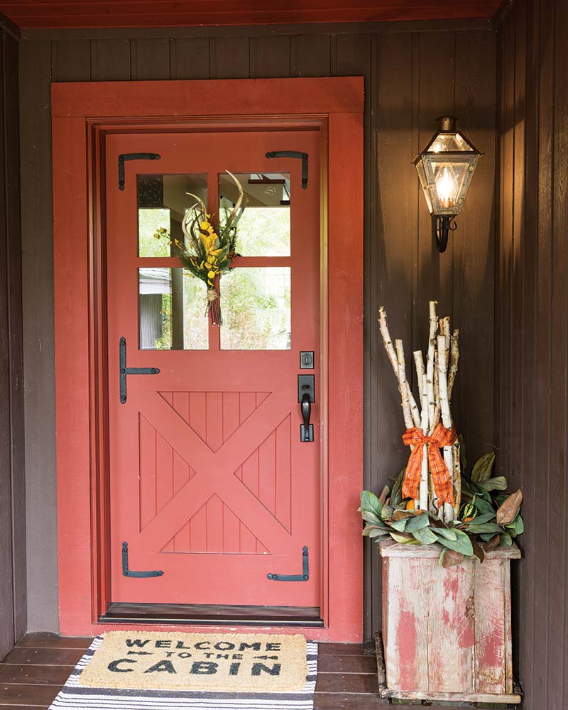 With the intention of creating a “cozy mountain cottage,” she took a cue from the shiplap ceiling in the living space and introduced a similar finish throughout the house. When it came to selecting a color palette, it was easy for Katie to go with rich reds and browns—not only because they fit with the desired cozy mountain vibes but also because red is a favorite shade of the designer. “I love red,” Katie says. “I have a friend who has told me that my house is always one wreath away from being decorated for Christmas.