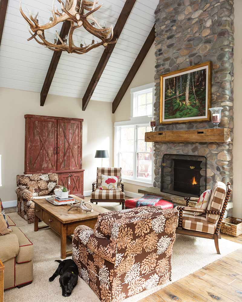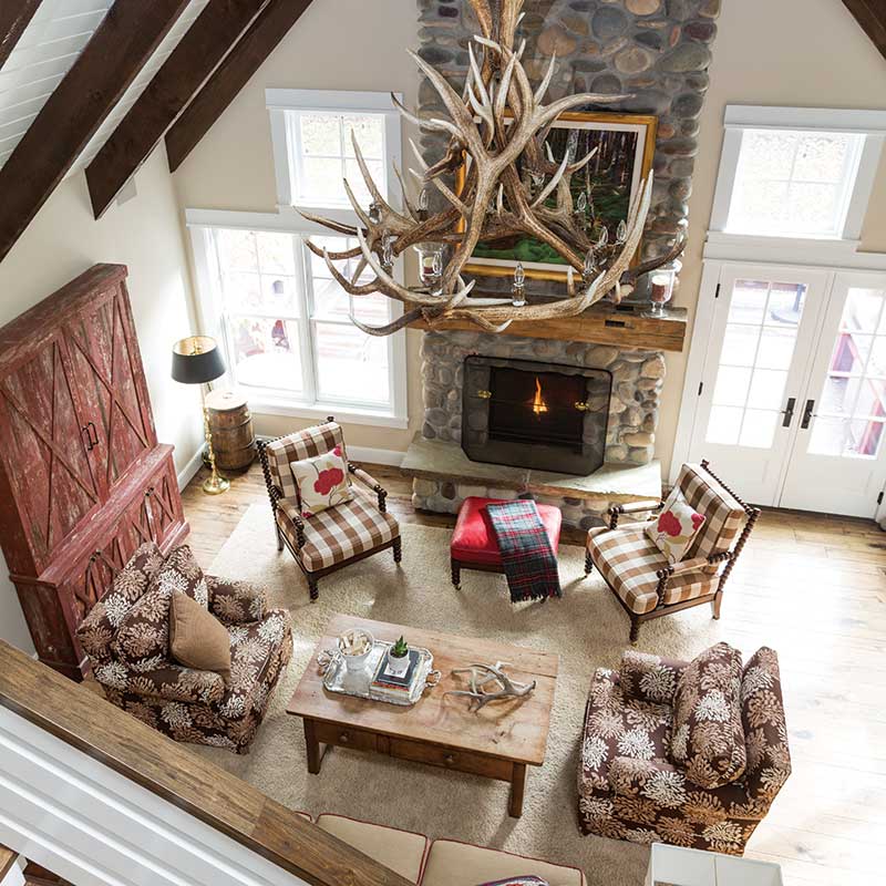 It’s a theme that presented itself throughout the entire design process as Katie set about crafting an interior that would honor the home’s surroundings while incorporating the pieces the family brought with them. “I like to design with a purpose while using items that tell a story and then adding what is necessary to make the space cozy, inviting, and livable,” she says.