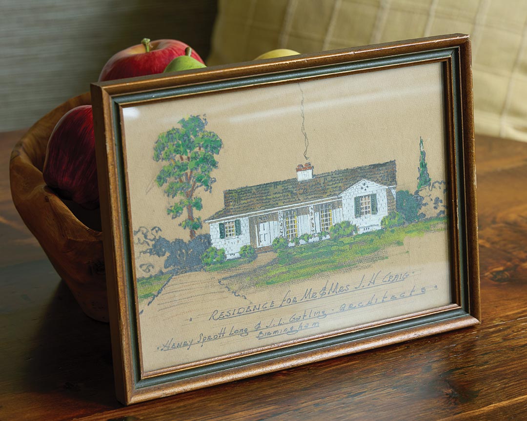 In June 2014, a mysterious parcel was delivered to Pat and Oliver Booth, who have lived in their classic postwar–style cottage for more than forty years. The package bore a postmark from Washington, DC, and the return address of a person neither of them knew. Intrigued, they opened the box and discovered a drawing of their house, created and signed by the original architects, Henry Sprott Long and J. L. Gatling. A note included with the drawing explained that the sender, a self-ascribed “lover of old homes, history, and fate,” discovered the historic memento at an estate sale and felt it should be returned to the current owners. Remarkably, the residence appeared much as it was conceived in 1947. Now, more than a decade later, the architectural integrity of the home remains intact, but the Booths have indulged in a few careful modifications to accommodate changing needs.