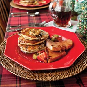 - Heat a lightly greased griddle over medium heat. Pour about ¼ cup batter for each pancake onto hot griddle. Cook until bubbles form on surface of pancakes and edges begin to look dry (about 3 minutes). Turn pancakes over; cook 2 minutes or until done. Serve warm with Walnut-Spice Butter and syrup.