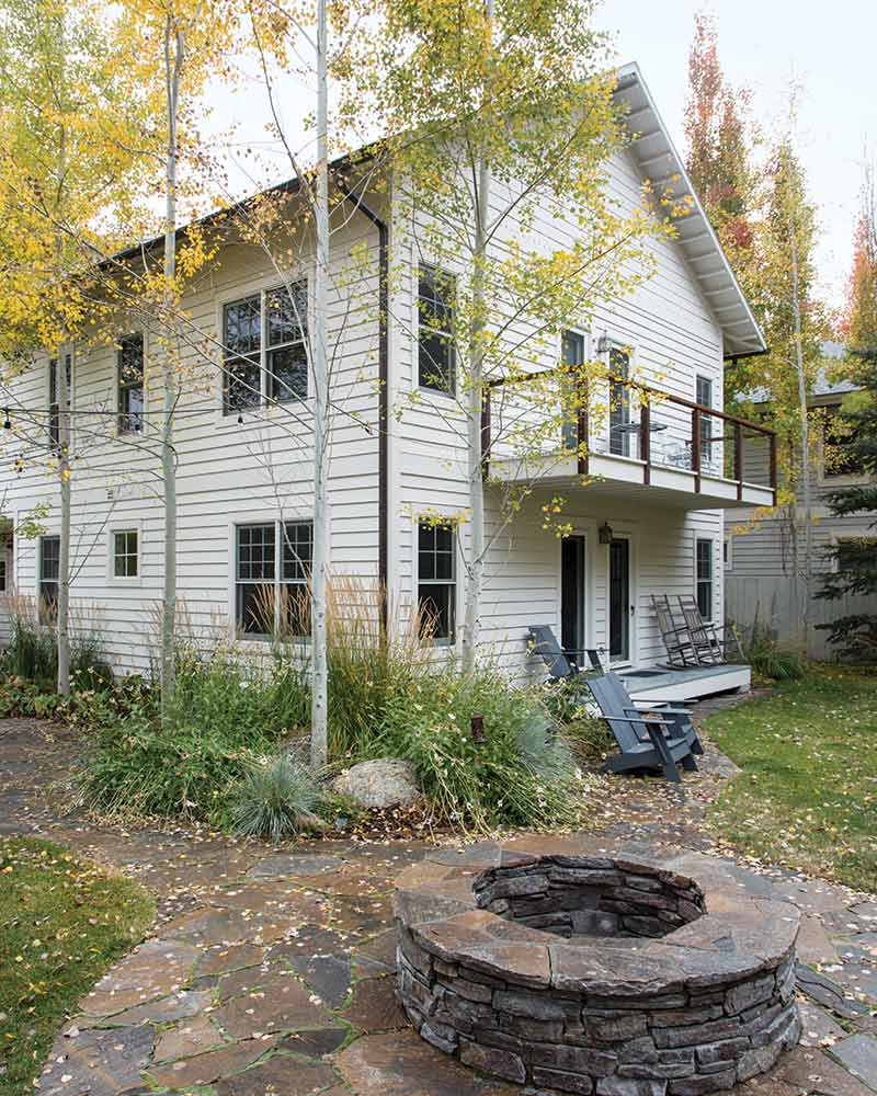 Kate’s original goal for the project extended to the home’s exterior, where regional flair is evident in every detail. Various outdoor spaces, including the firepit and the rocking chairs on the porch, draw together friends and family alike, inviting everyone to sit back and enjoy the unique beauty Wyoming has to offer.