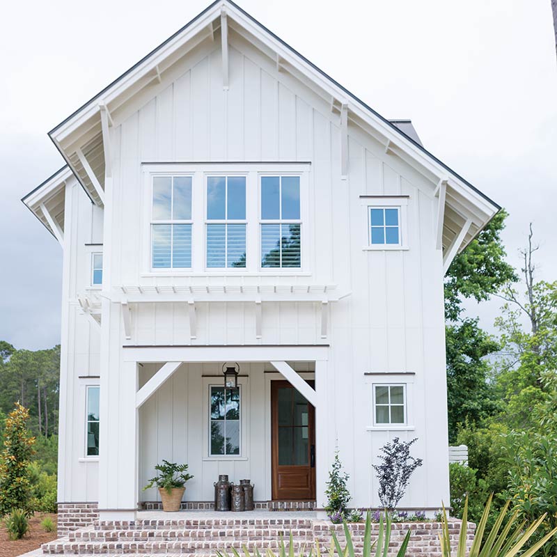 The home takes its cues from the breathtaking views surrounding it on all sides. Simple lines and understated tones help the home to both blend into and enhance the area. And creating multiple spaces for open-air gathering help blur the line between inside and out. From the front door to the screened porch off the master suite to the deck on the second level, there are plenty of places for family and friends to enjoy what nature has to offer from the comfort of the home.
